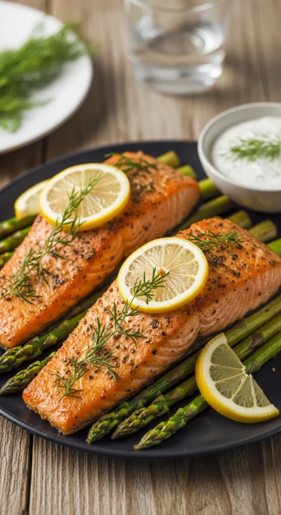 Serve with steamed vegetables or rice. Garnish with fresh dill and lemon slices for a clean presentation.